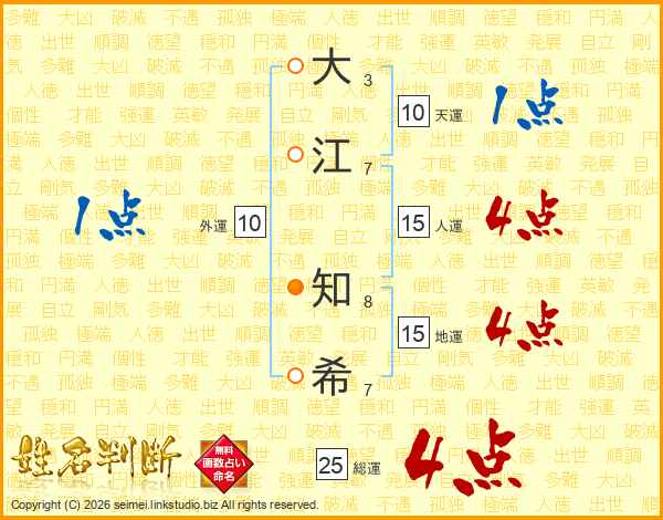 大江知希さんの総運は25画の4点!