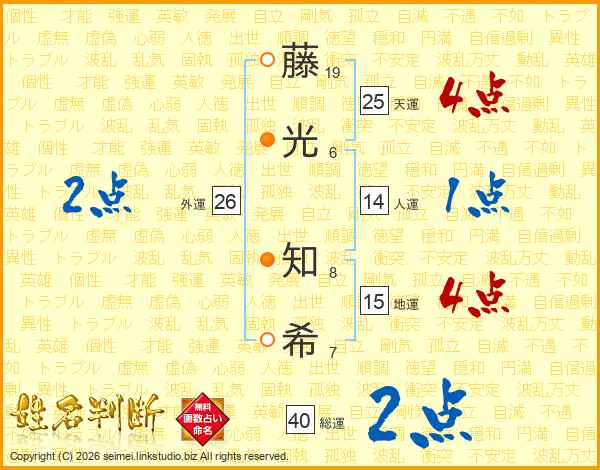 藤(19画)光(6画) 知(8画)希(7画)
