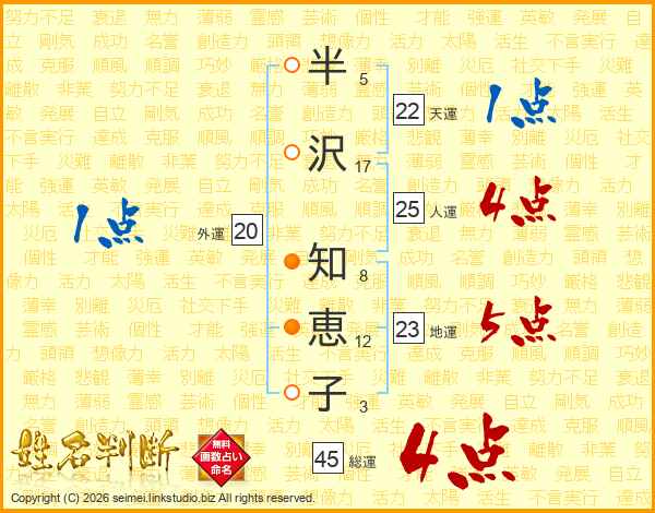 半沢知恵子さんの人運は25画の4点!