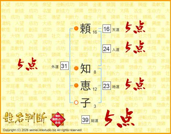 頼知恵子さんの総運は39画の5点!