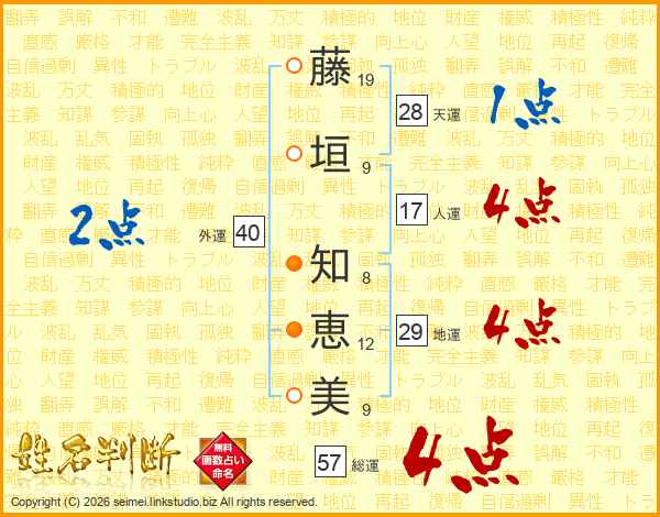 藤垣知恵美さんの総運は57画の4点!