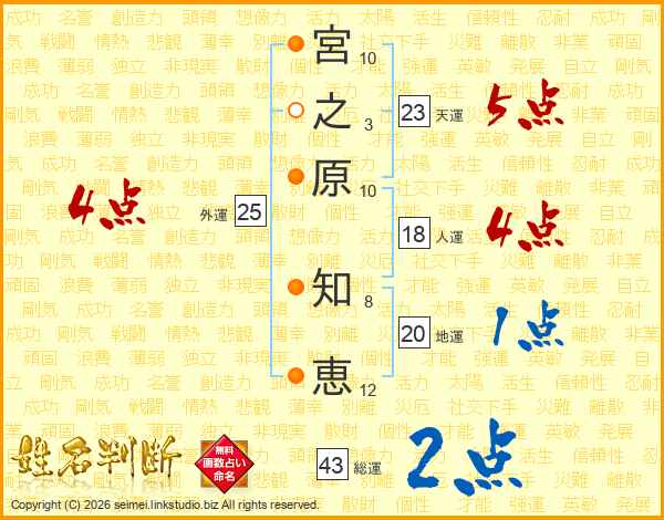 宮之原知恵さんの総運は43画の2点!