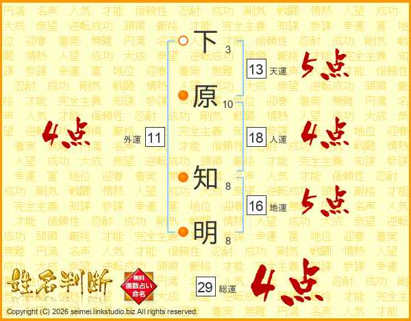下原知明さんの総運は29画の4点!