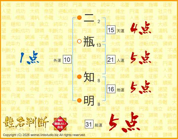 二瓶知明さんの総運は31画の5点!