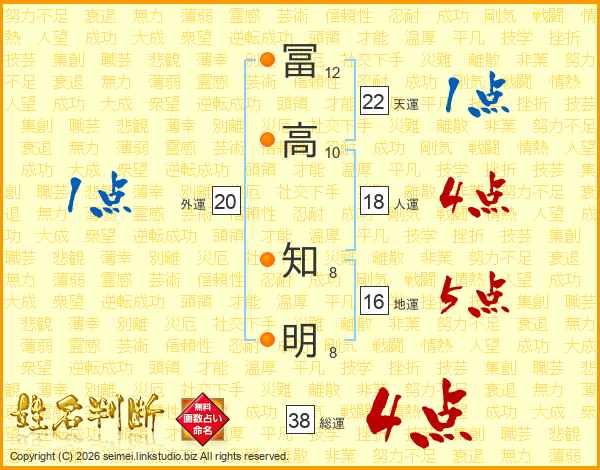 冨高知明さんの総運は38画の4点!