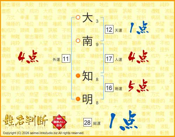 大南知明さんの総運は28画の1点!