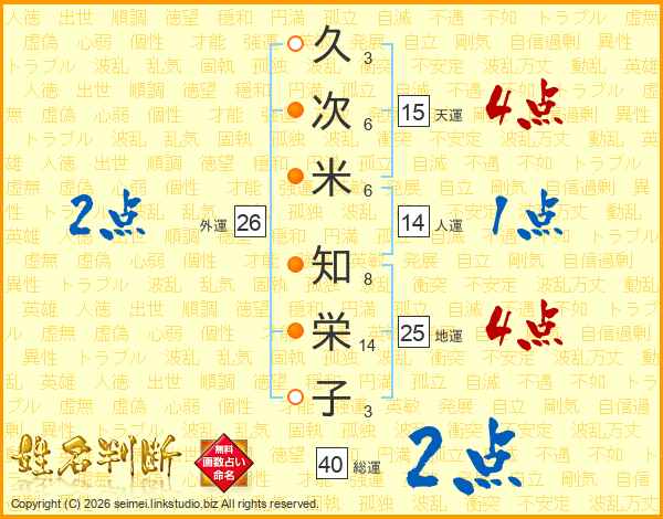 久(3画)次(6画)米(6画) 知(8画)栄(14画)子(3画)