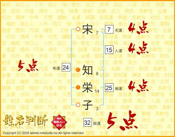 宋知栄子さんの総運は32画の5点!