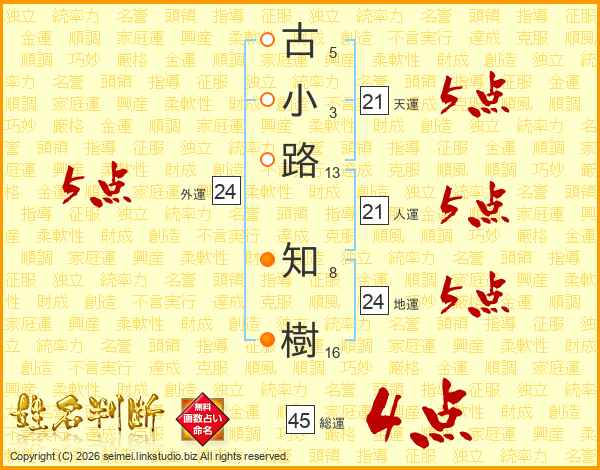 古小路知樹さんの総運は45画の4点!