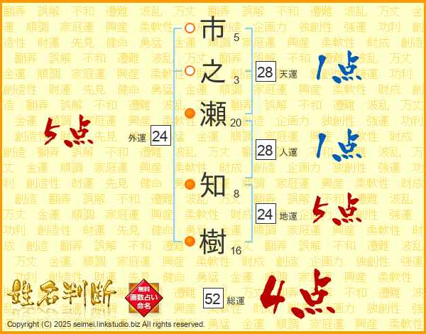 市之瀬知樹さんの総運は52画の4点!