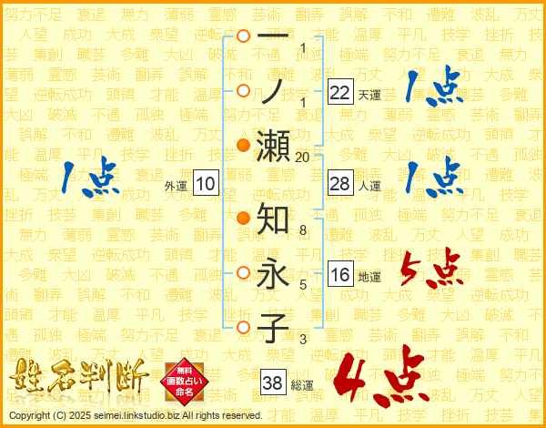 一ノ瀬知永子さんの総運は38画の4点!