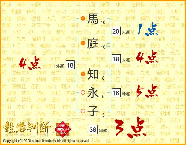 馬庭知永子さんの外運は18画の4点!
