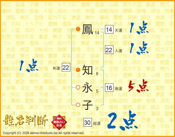鳳知永子さんの天運は14画の1点!