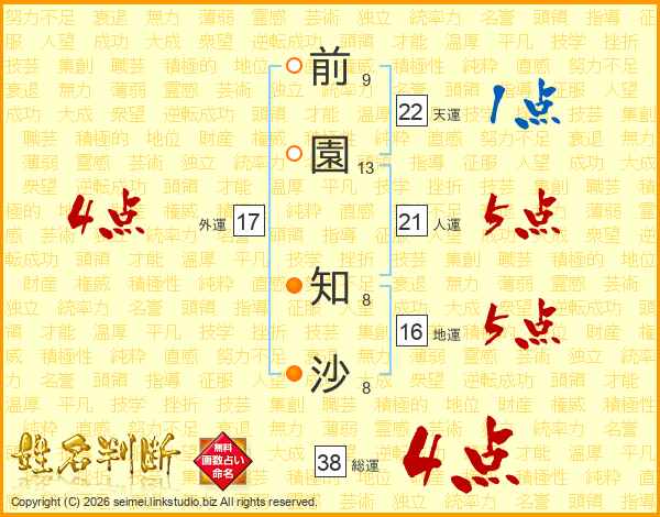 前園知沙さんの総運は38画の4点!