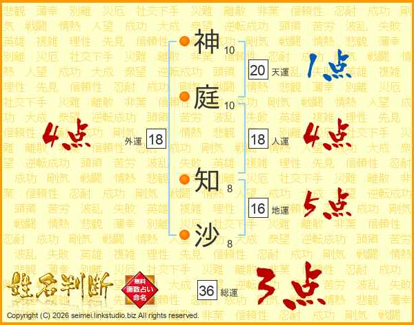 神庭知沙さんの外運は18画の4点!