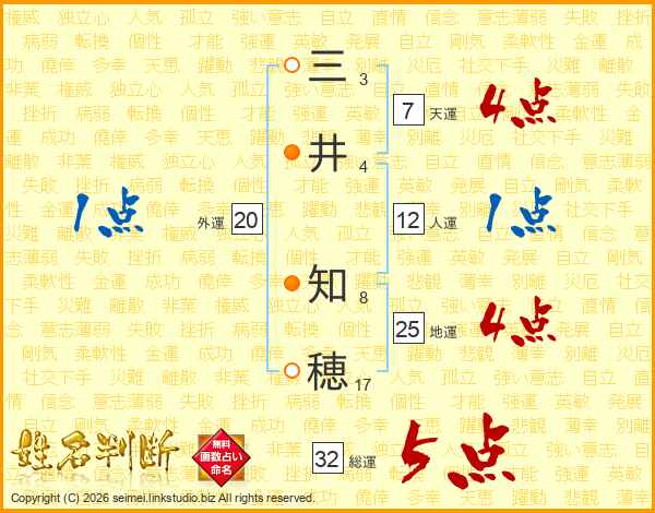三井知穂さんの総運は32画の5点!