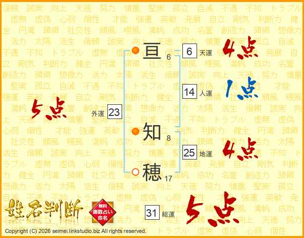 亘知穂さんの総運は31画の5点!