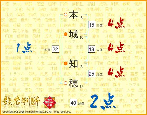 本城知穂さんの総運は40画の2点!