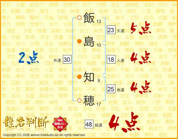 飯島知穂さんの総運は48画の4点!