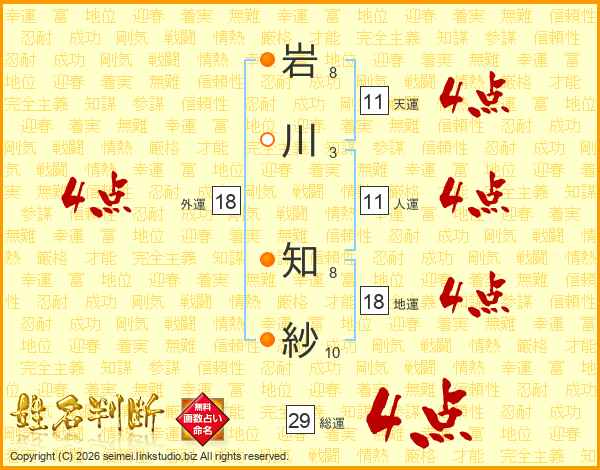 岩川知紗さんの総運は29画の4点!