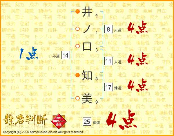 井ノ口知美さんの総運は25画の4点!