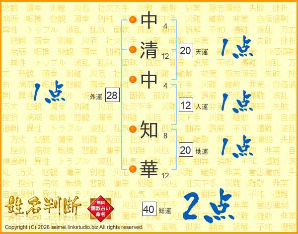 中清中知華さんの総運は40画の2点!