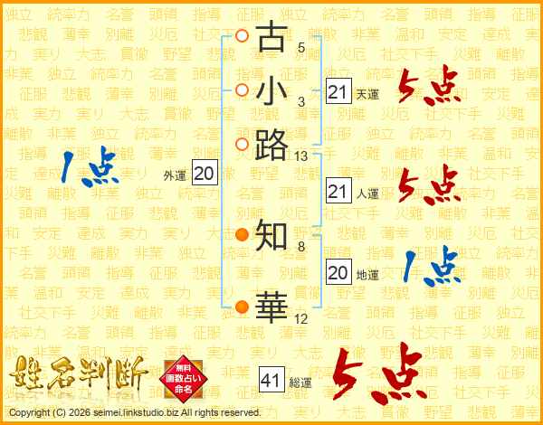 古(5画)小(3画)路(13画) 知(8画)華(12画)