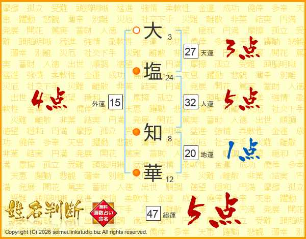 大塩知華さんの総運は47画の5点!