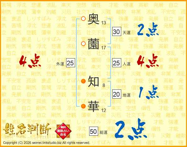 奥薗知華さんの人運は25画の4点!