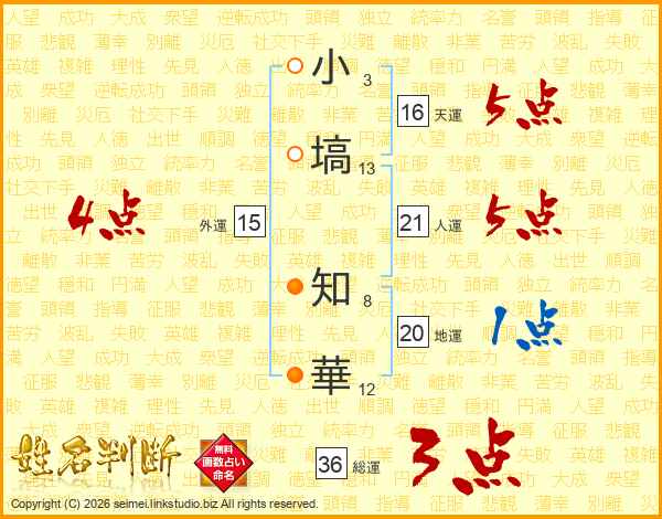 小塙知華さんの天運は16画の5点!