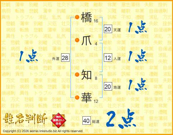 橋爪知華さんの天運は20画の1点!