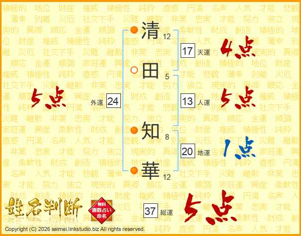 清田知華さんの外運は24画の5点!