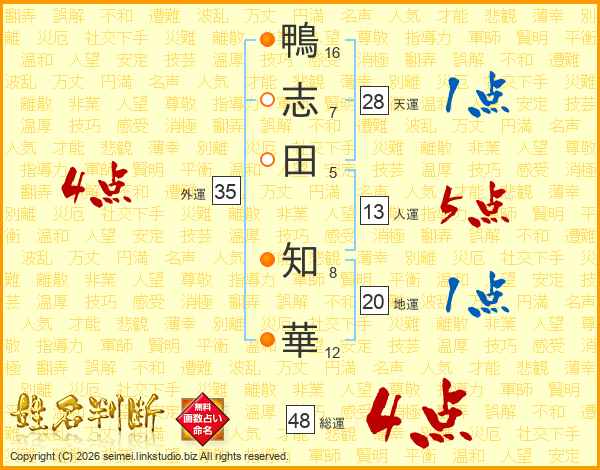 鴨志田知華さんの天運は28画の1点!