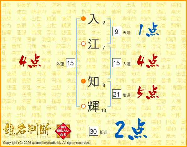 入江知輝さんの総運は30画の2点!