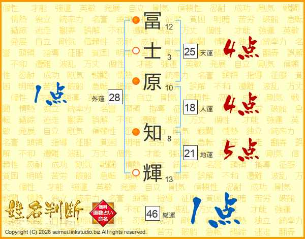 冨士原知輝さんの総運は46画の1点!