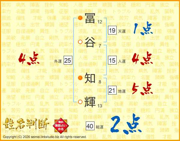 冨谷知輝さんの地運は21画の5点!