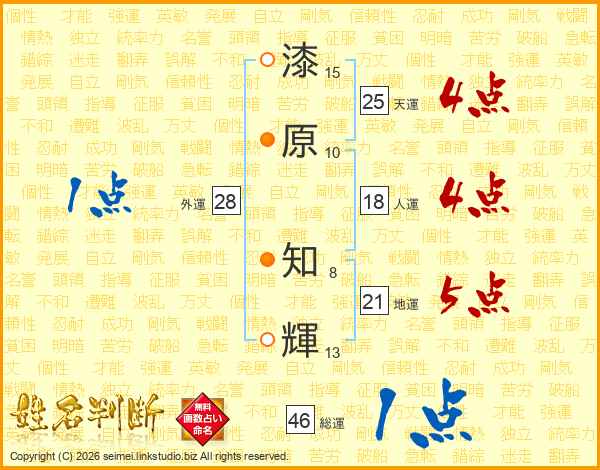 漆原知輝さんの天運は25画の4点!