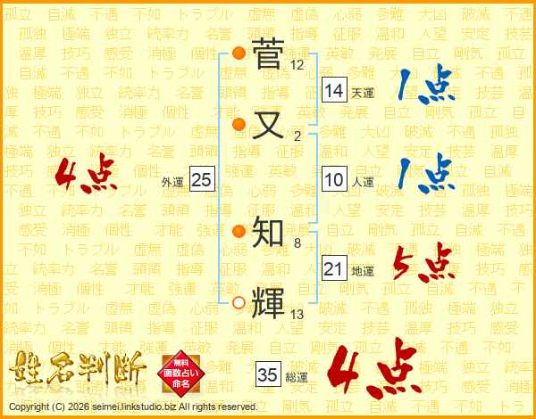 菅又知輝さんの総運は35画の4点!