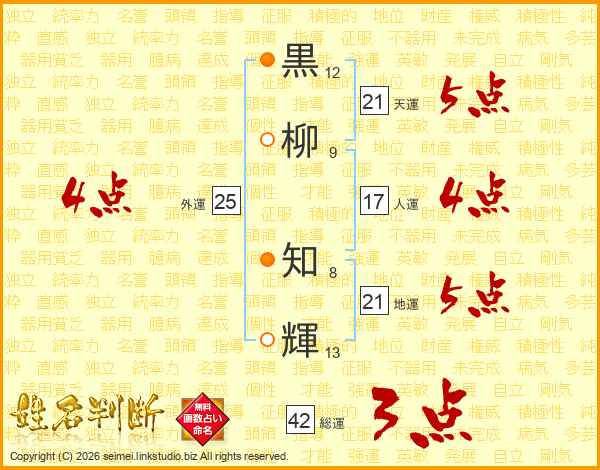 黒柳知輝さんの総運は42画の3点!