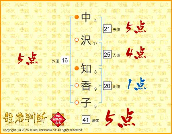 中沢知香子さんの人運は25画の4点!