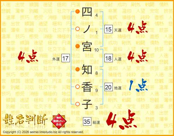 四ノ宮知香子さんの総運は35画の4点!