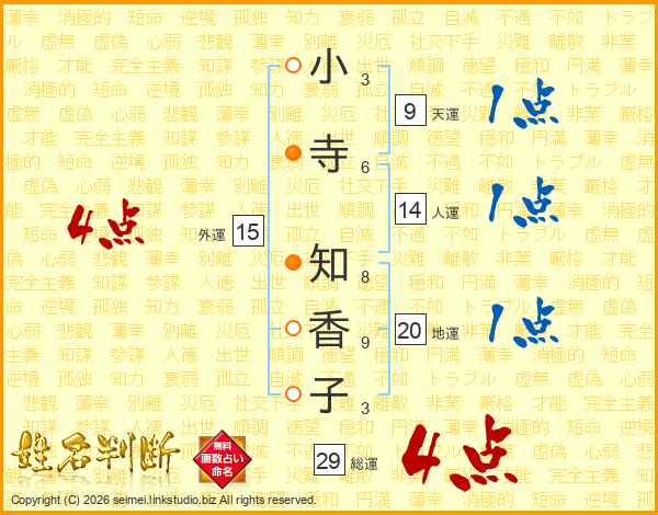 小寺知香子さんの総運は29画の4点!