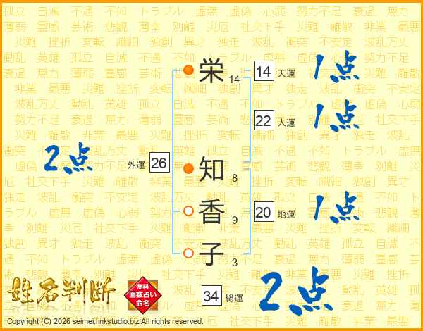 栄知香子さんの総運は34画の2点!