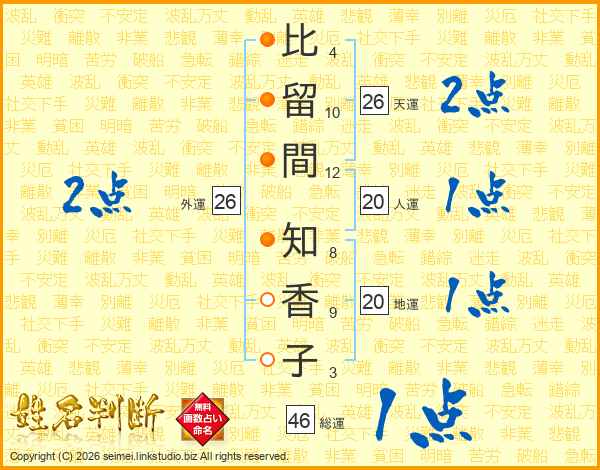 比留間知香子さんの天運は26画の2点!