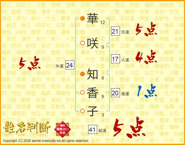 華咲知香子さんの総運は41画の5点!