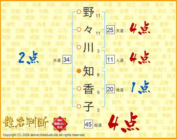 野々川知香子さんの総運は45画の4点!