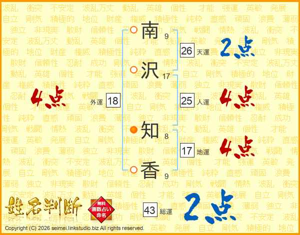 南沢知香さんの天運は26画の2点!