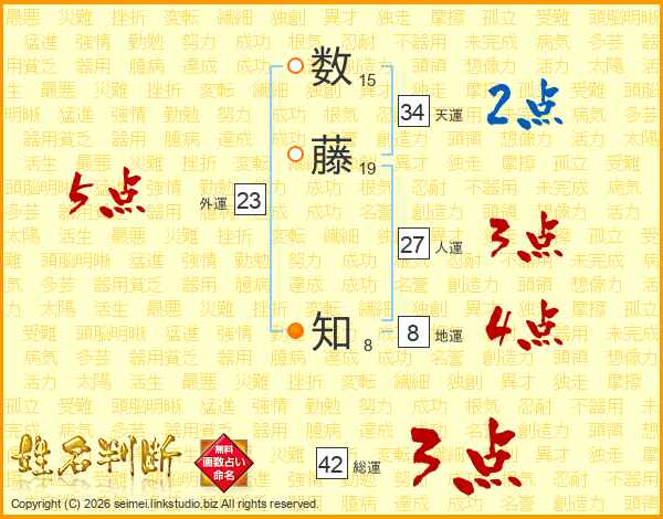 数藤知さんの天運は34画の2点!