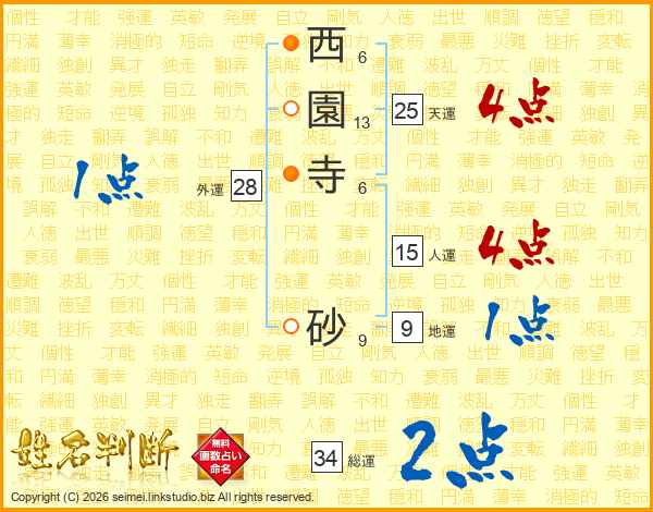 西園寺砂さんの総運は34画の2点!