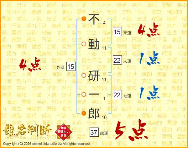 不動研一郎さんの総運は37画の5点!